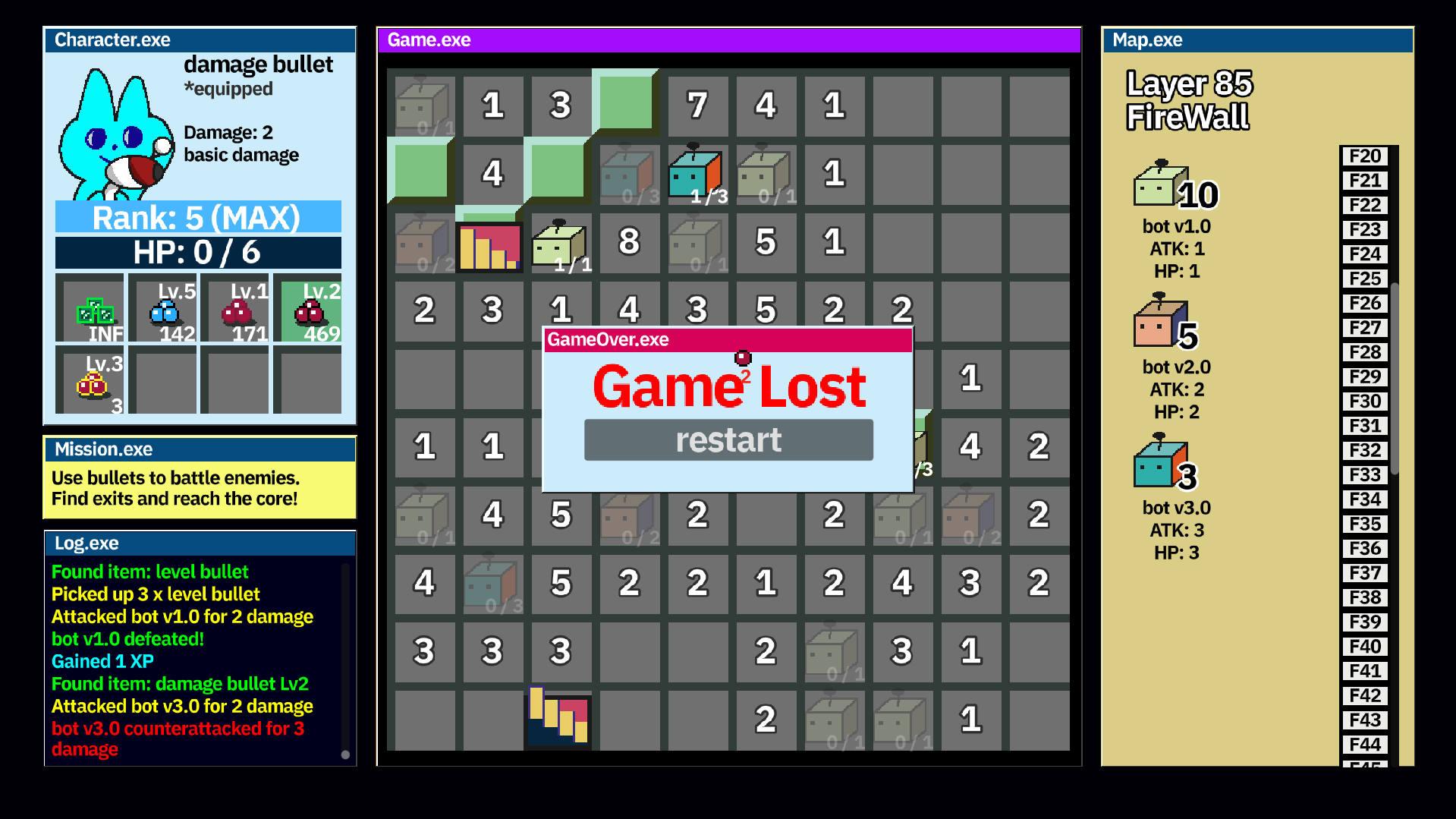 You are Bito, an elite hacker with a single goal: reach the Prime Kernel, the deepest layer where the original AI code lies. But each layer is booby-trapped with encrypted data mines.